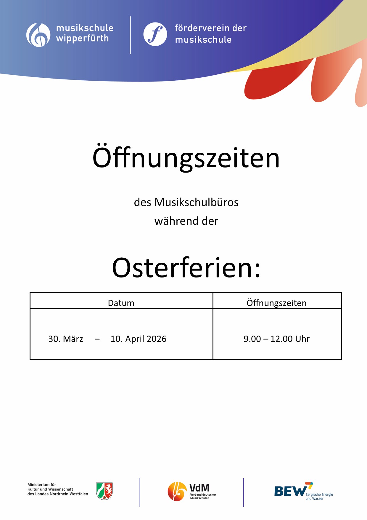 Die Musikschule Wipperfürth lädt herzlich zum traditionellen Schülerkonzert ein. Unsere Schüler- und Lehrerschaft hat zum Ende des Schuljahrs wieder ein abwechslungsreiches Programm vorbereitet. Auch das Jugendblasorchester wird zu hören sein! Wir freuen uns auf Ihren Besuch! Der Eintritt ist frei!